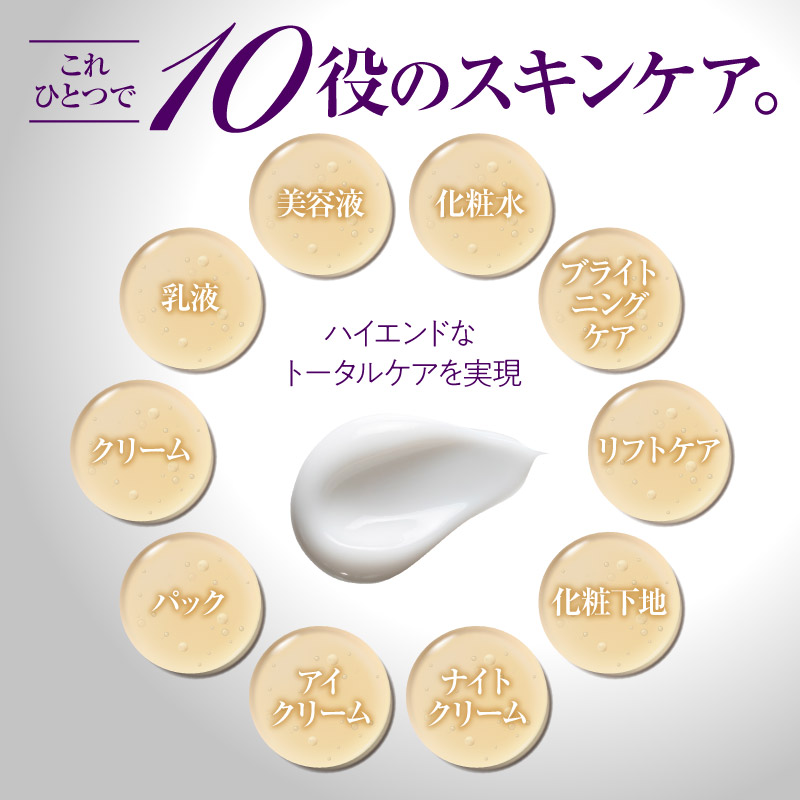 これひとつで10役を担うオールインワンだから、朝晩の時短ケアはもちろん、特別なスペシャルケアとしても贅沢な肌体験を実感できます。
