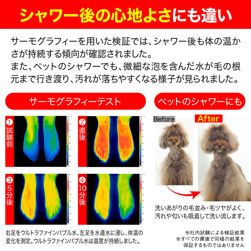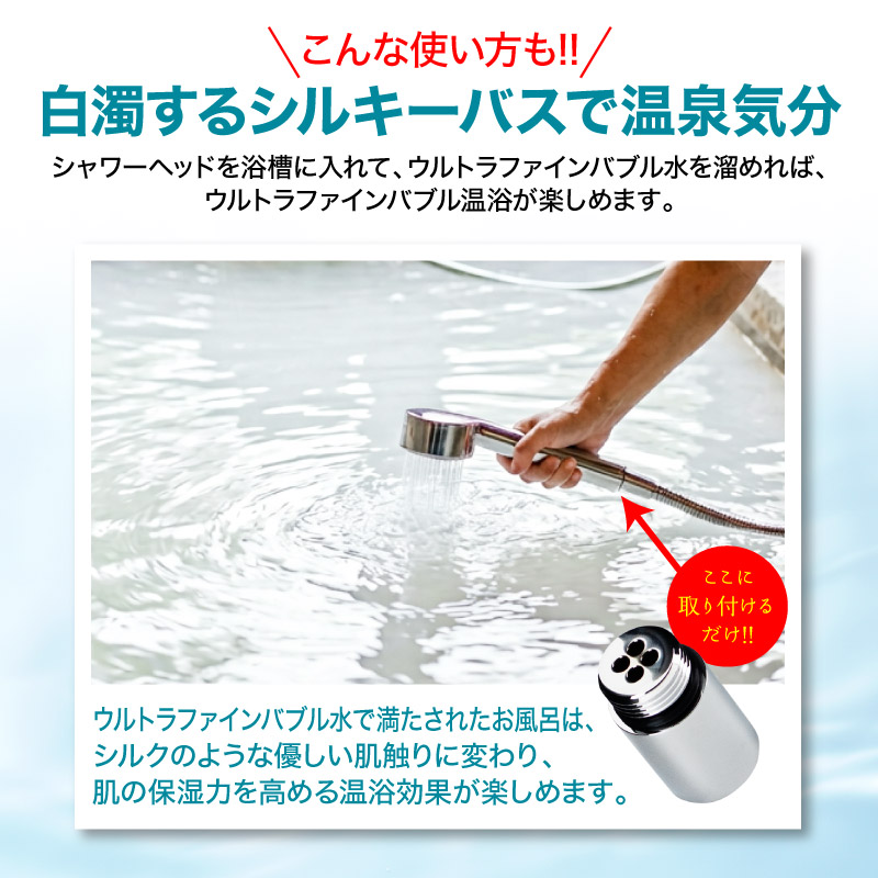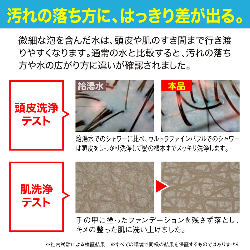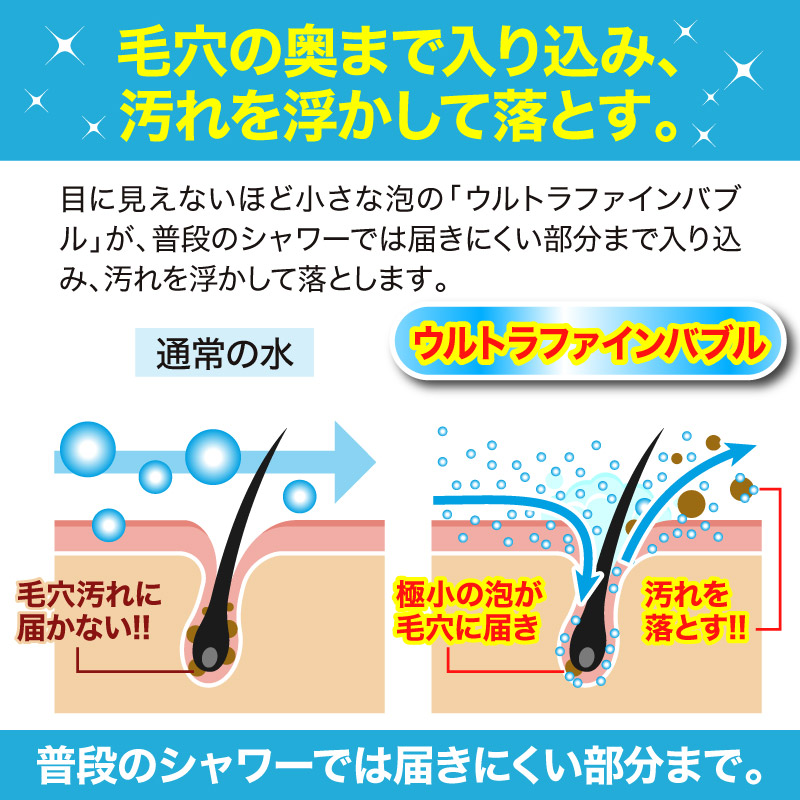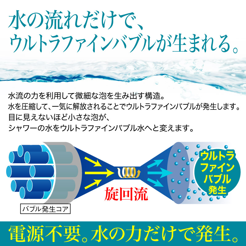 超微細な泡が⽔の中に広がり、シャワーの洗い⼼地や使い⼼地に違いをもたらします。