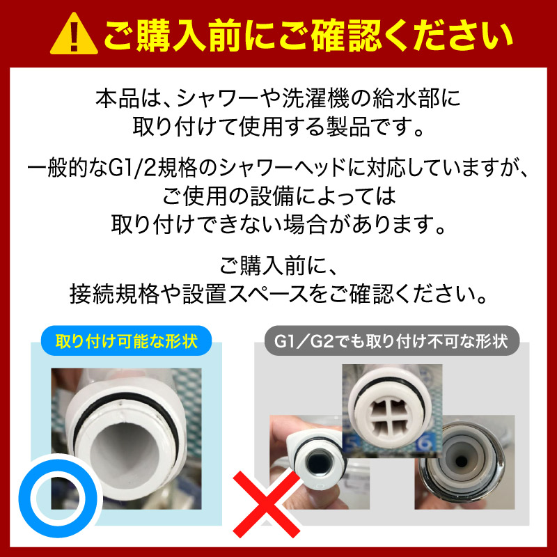 ●取付ネジ径がG3/4のため、それ以外のネジ径の洗濯機には取付できません。洗濯機のネジ径をご確認の上ご使⽤ください。